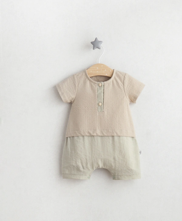 The Classic Romper offers a timeless yet modern style for baby boys. With its clever two-piece look and lightweight, breathable fabrics, it combines elegance with comfort. Crafted from a blend of natural cotton and lyocell, this romper is soft, airy, and perfect for summer days or special family occasions.